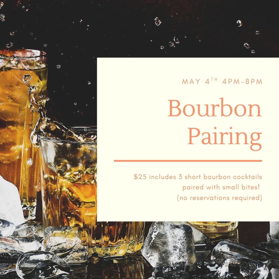 For $25 enjoy 2 mini bourbon cocktails paired with small bites! No reservations needed.