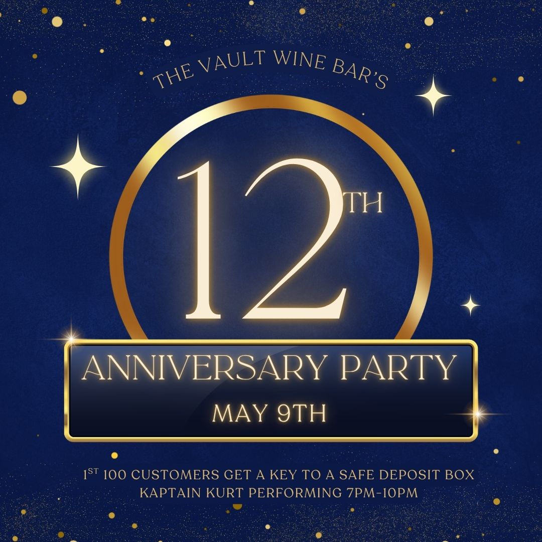 Join us to help celebrate our 12th Anniversary! 1st 100 customers get a key to a safe deposit box. All boxes filled with prizes! Kaptain Kurt performing on the patio 7pm-10pm